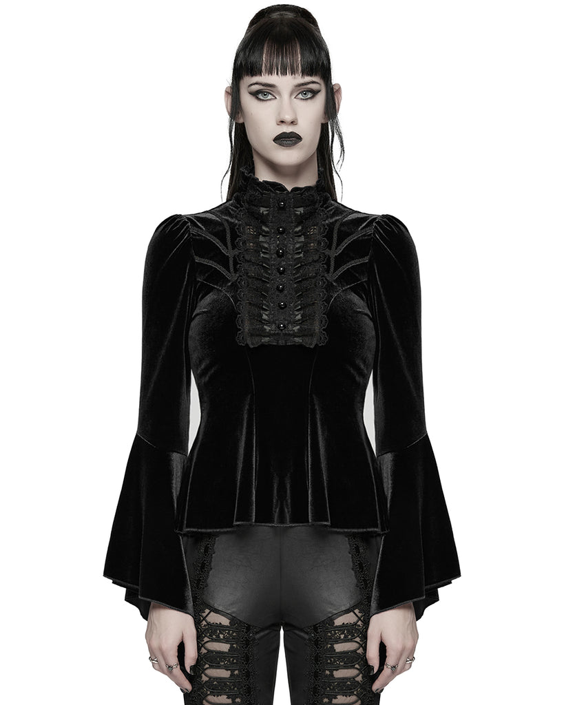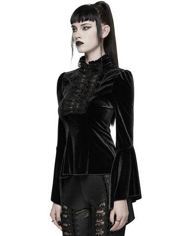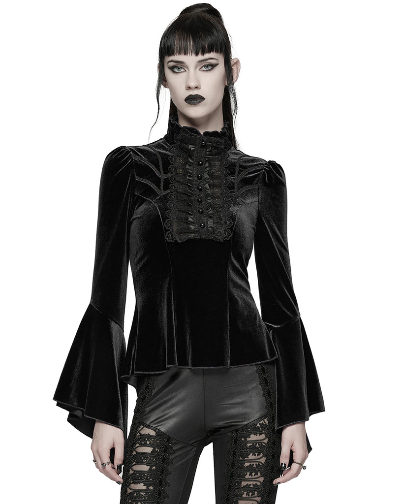 Punk Rave Womens Elegant Gothic Velvet & Pleated Lace Blouse Top
