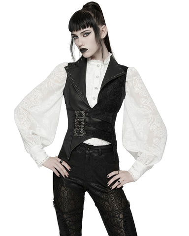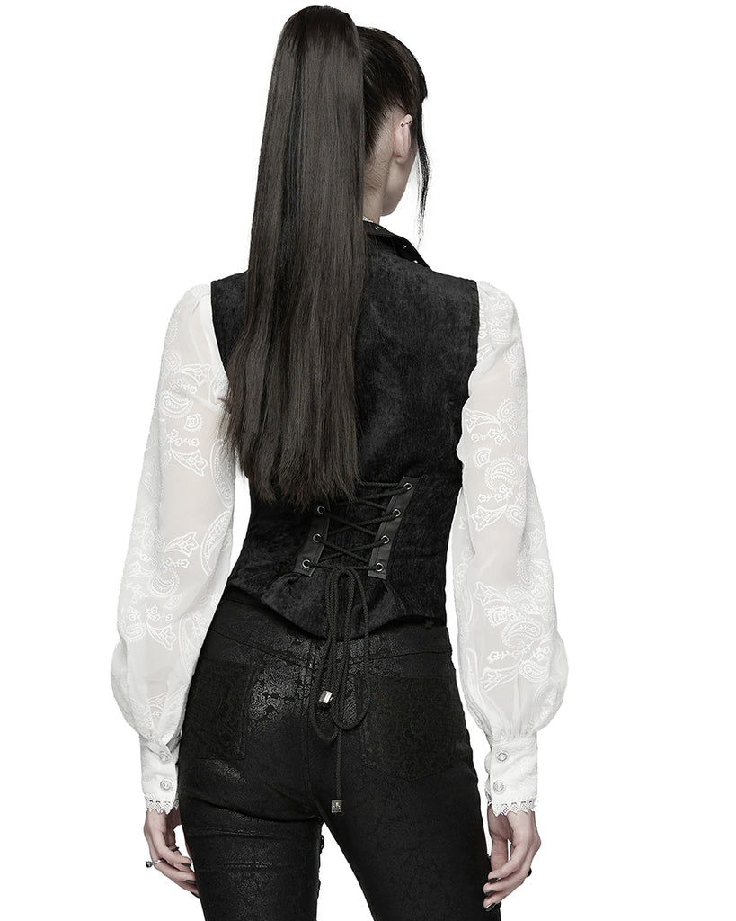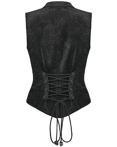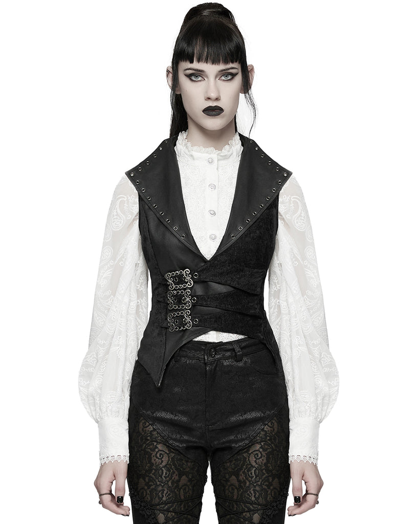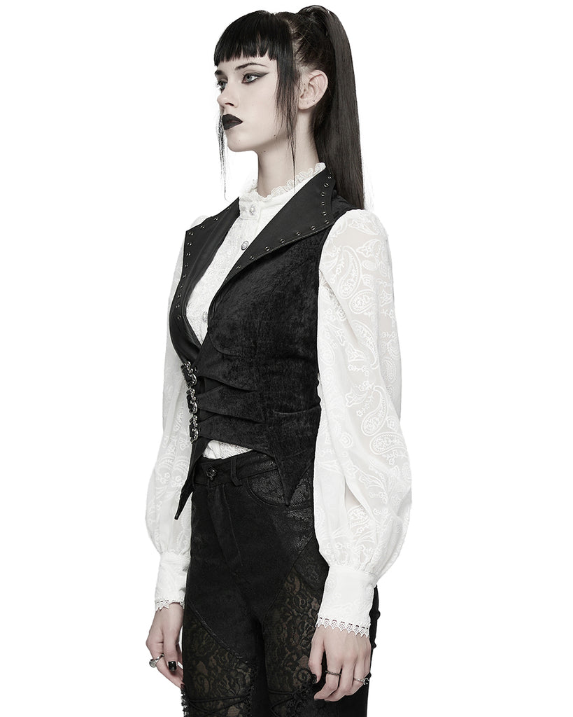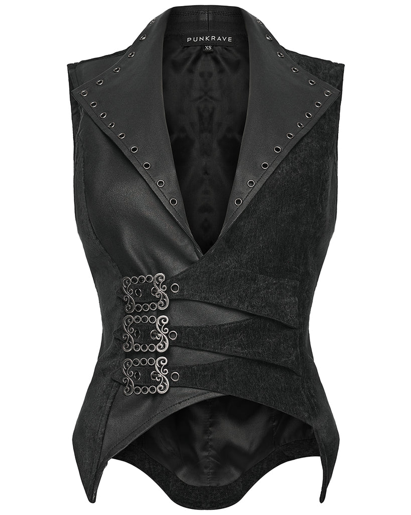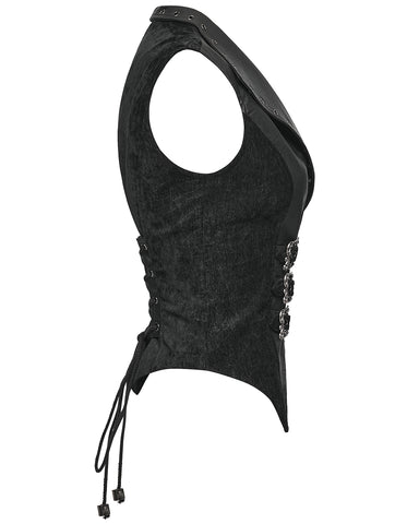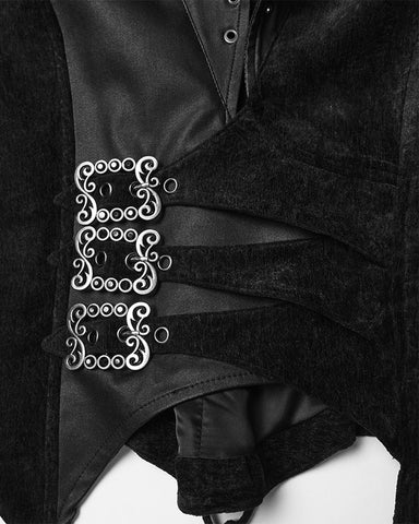 Punk Rave Womens Gothic Spliced Velvet & Faux Leather Asymmetric Waistcoat Vest