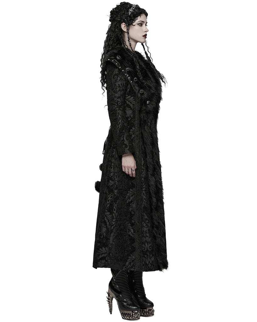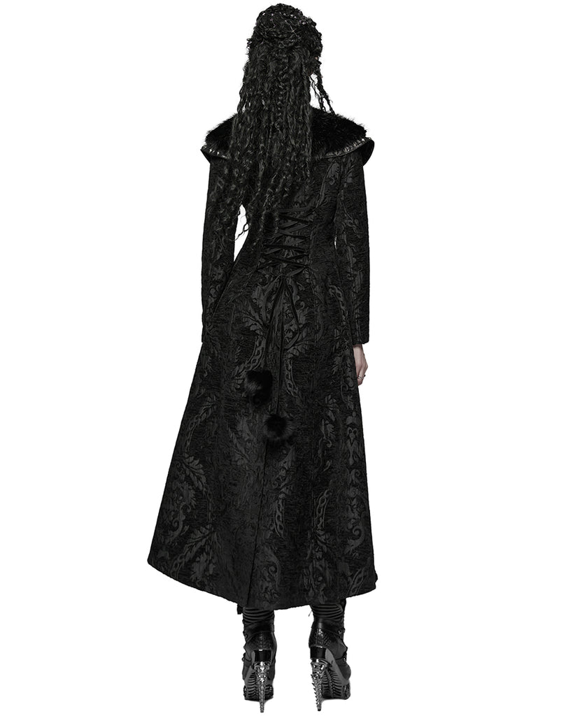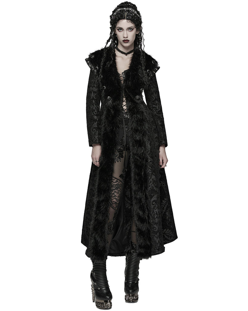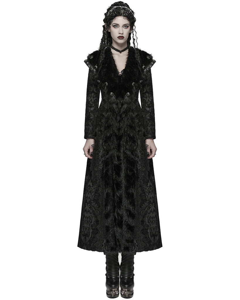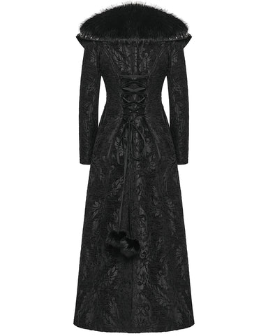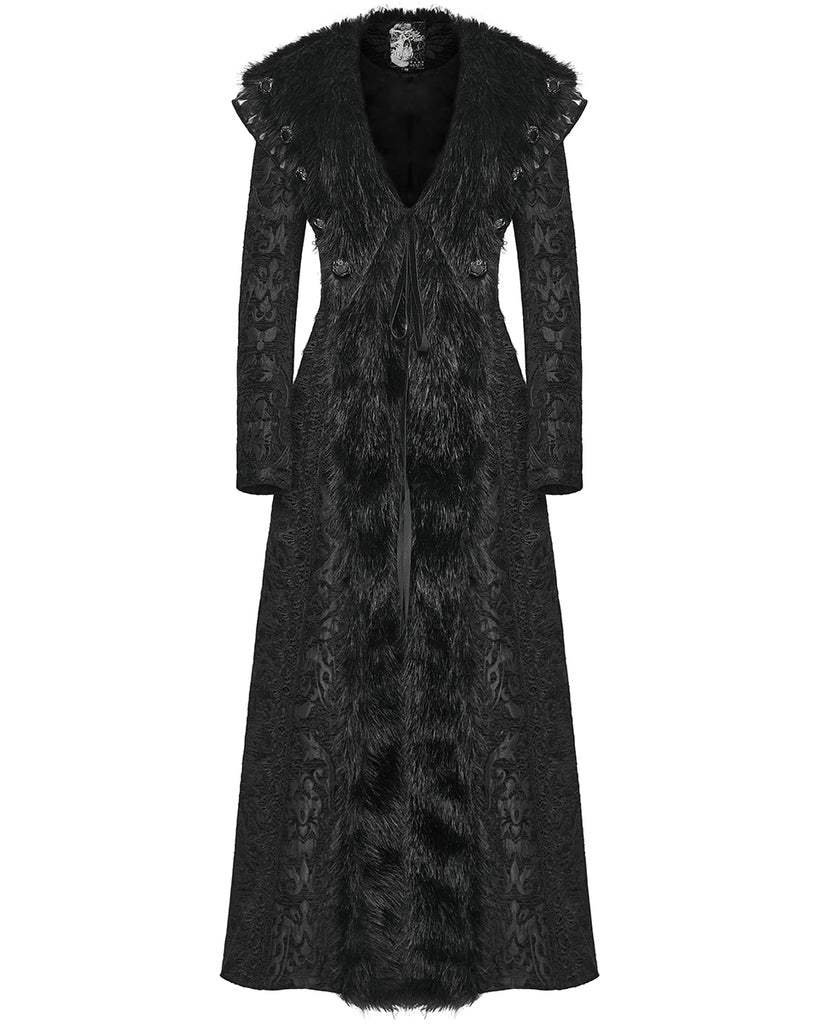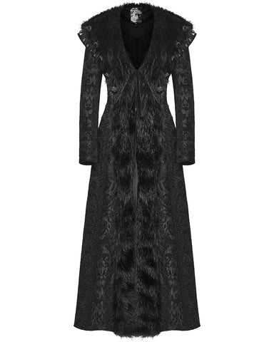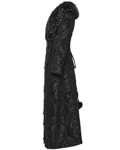 Punk Rave Womens Long Gothic Aristocrat Jacquard & Faux Fur Winter Coat