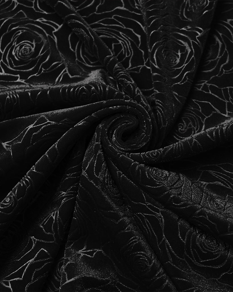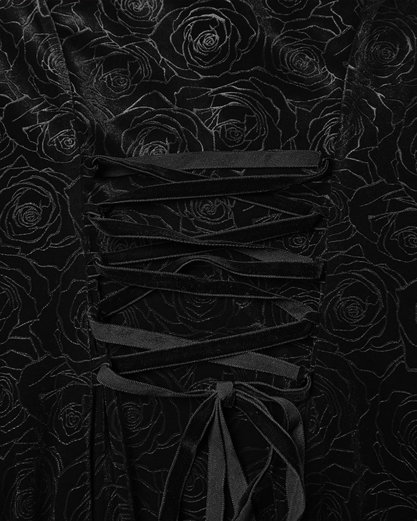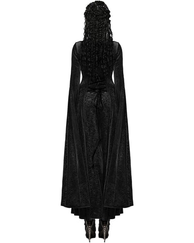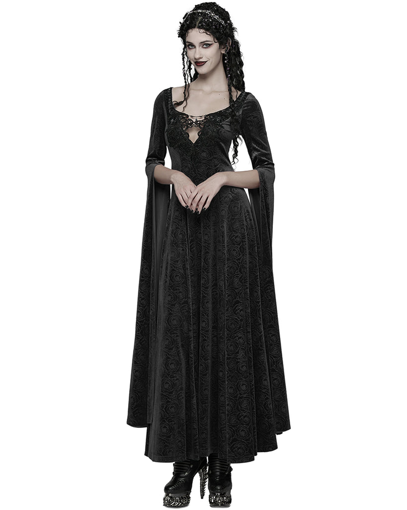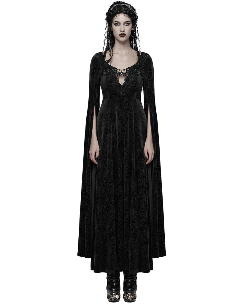 Punk Rave Womens Long Gothic Rose Velvet Flared Split Sleeve Maxi Dress - Black