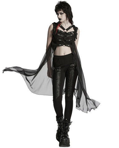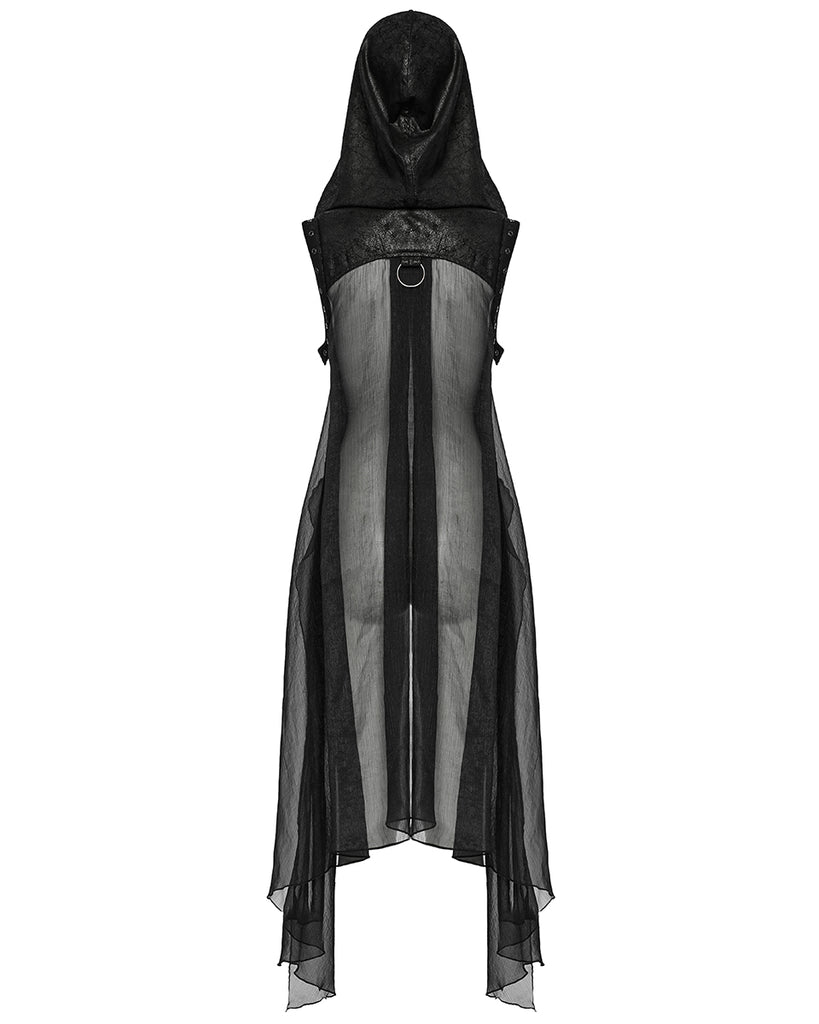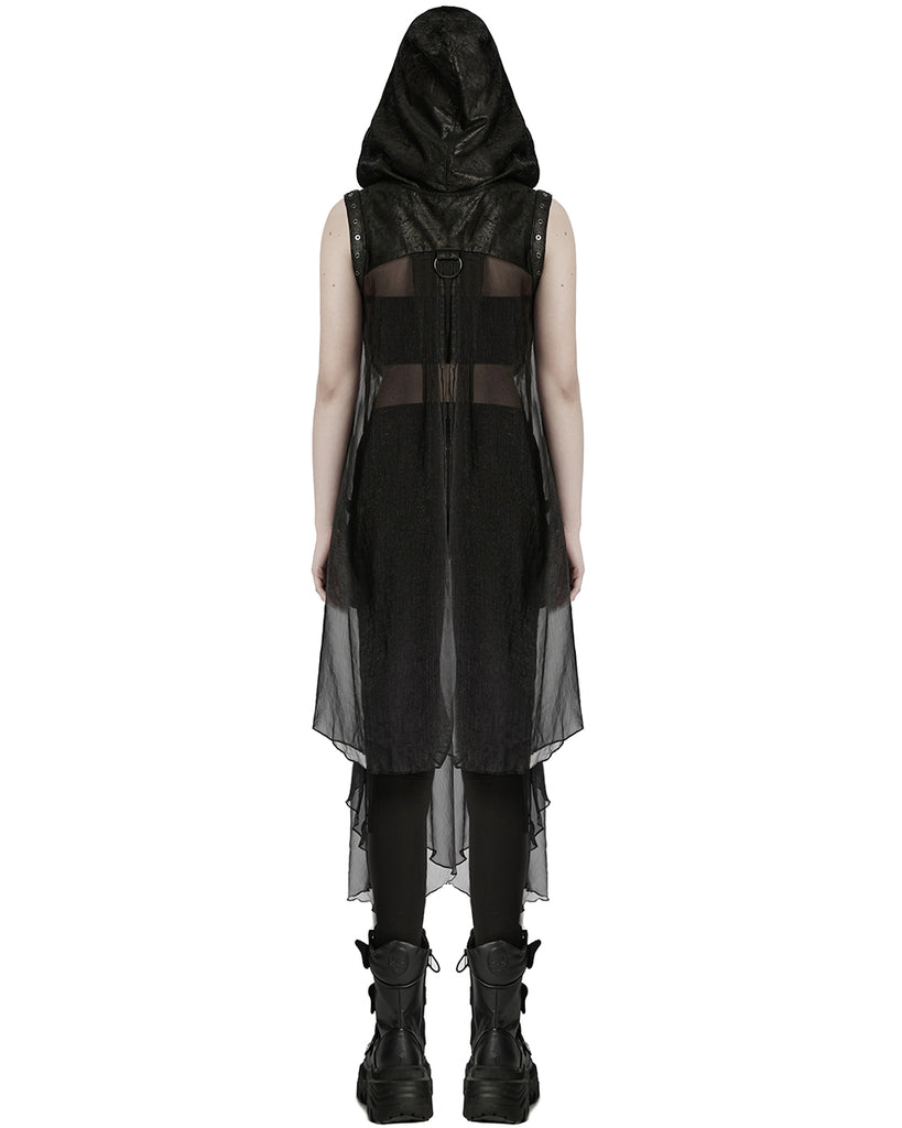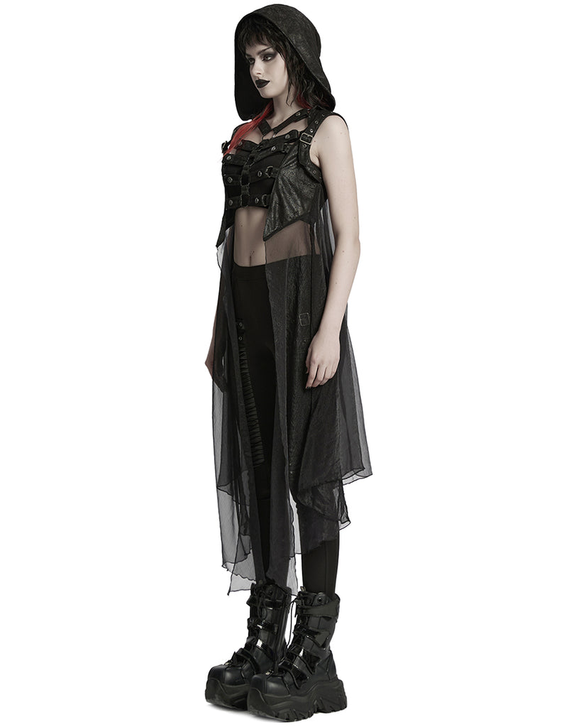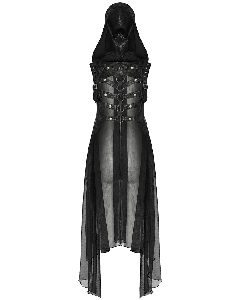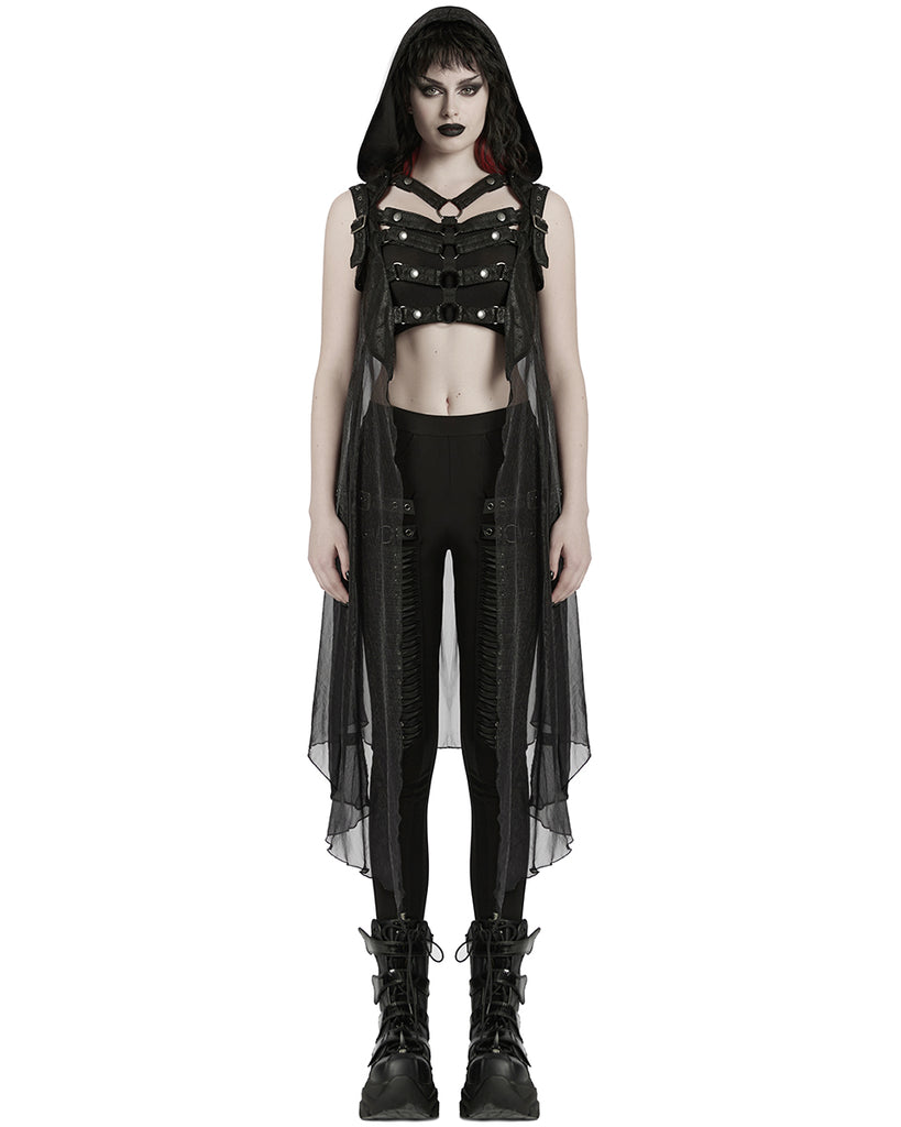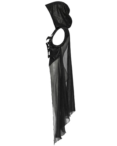 Punk Rave Womens Gothic Cyberpunk Hooded Harness Chiffon Cloak Cape