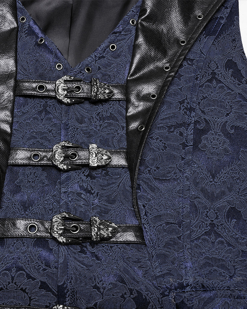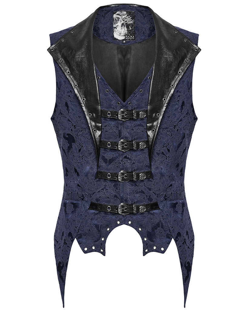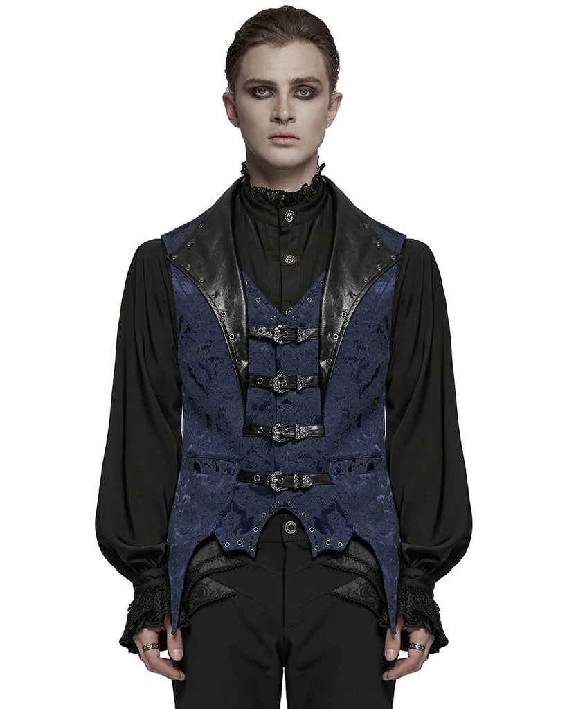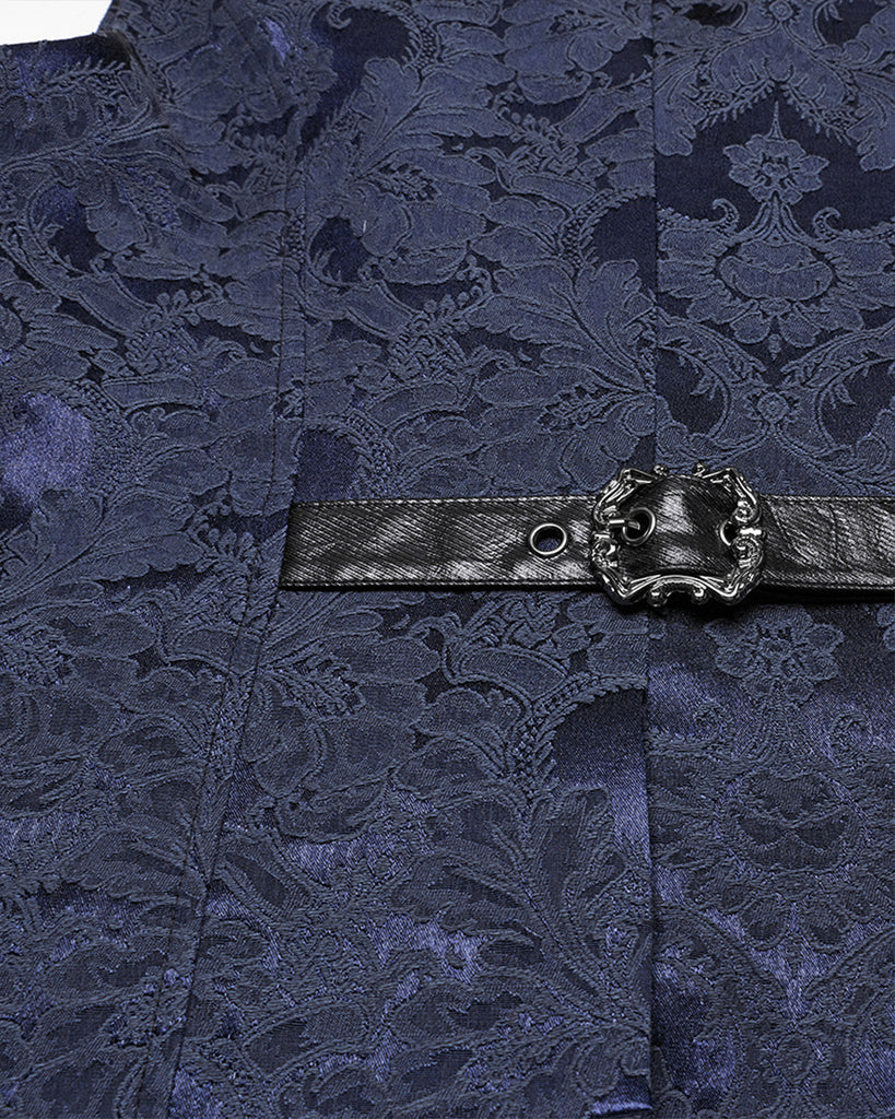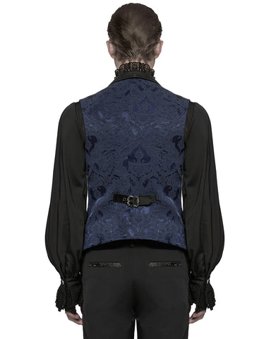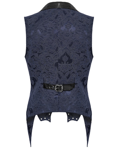 Punk Rave Mens Dark Victorian Gothic Damask Jacquard Waistcoat Vest - Blue
