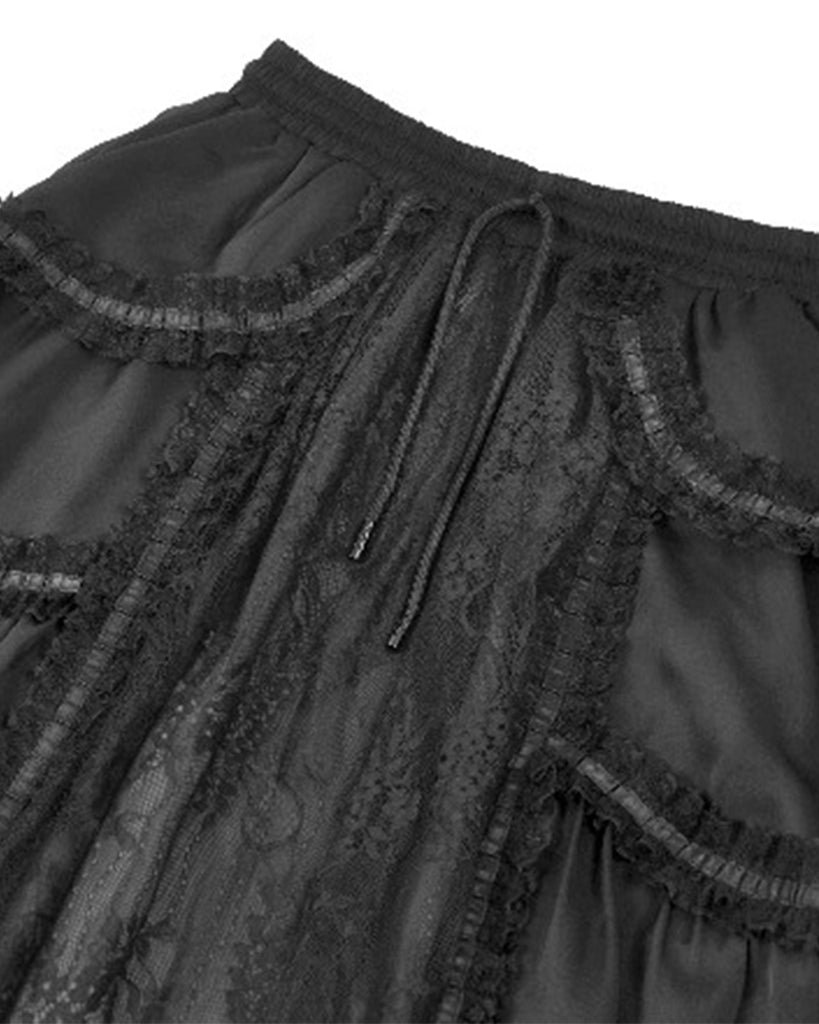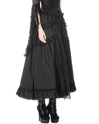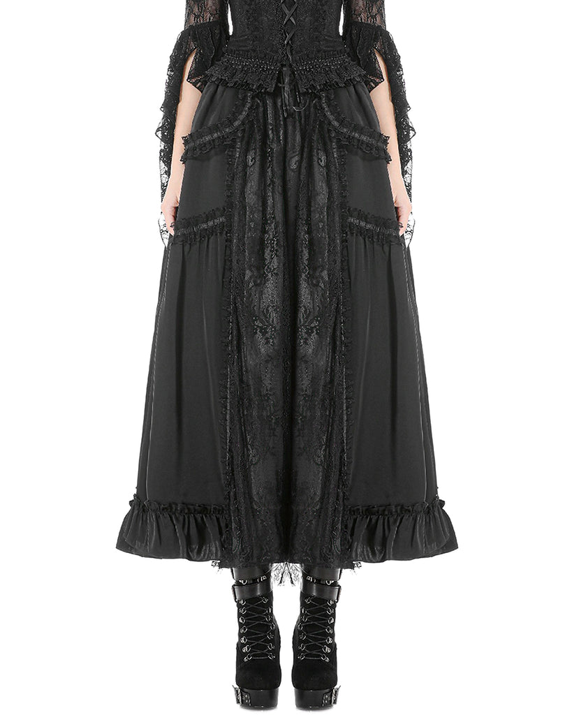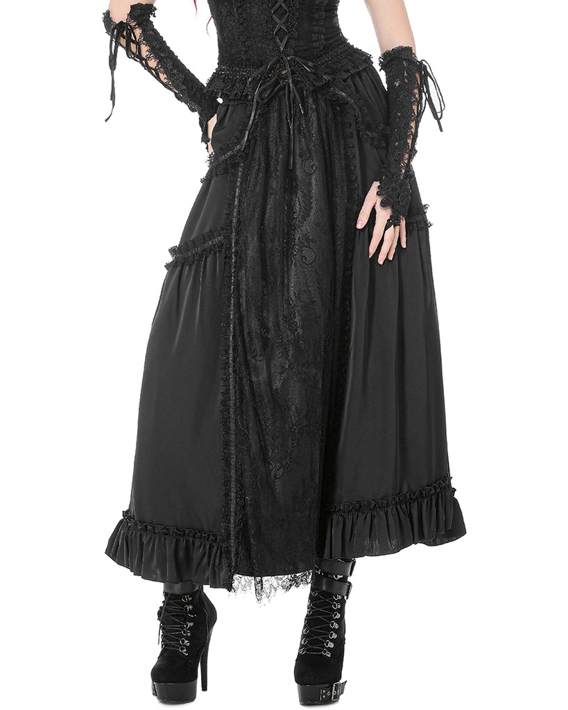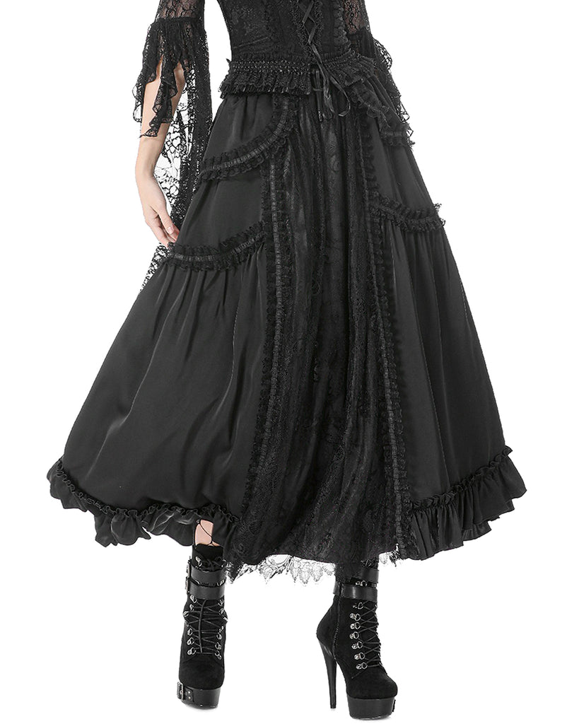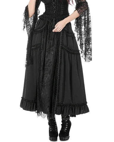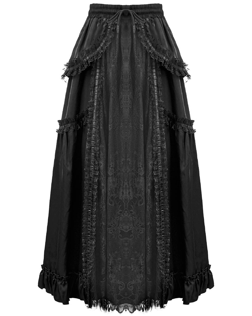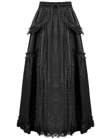 Dark In Love Womens Baroque Gothic Lace Layered Maxi Skirt - Black