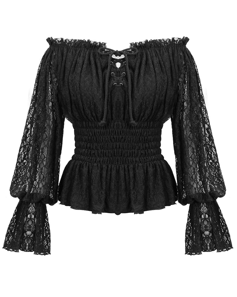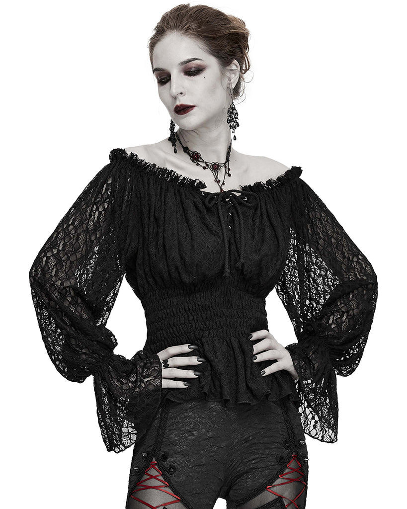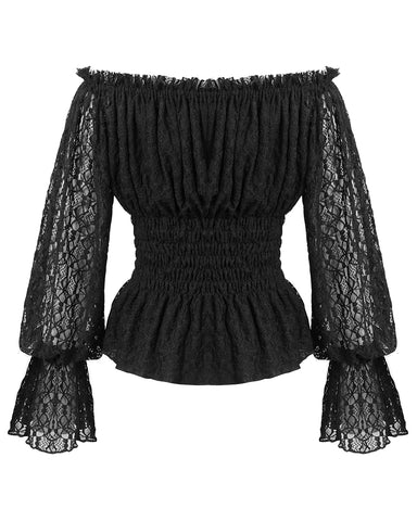Crafted from soft, stretchy and ornately patterned nylon blend floral lace in an elegant and stylish, yet traditional peasant blouse inspired off shoulder design.