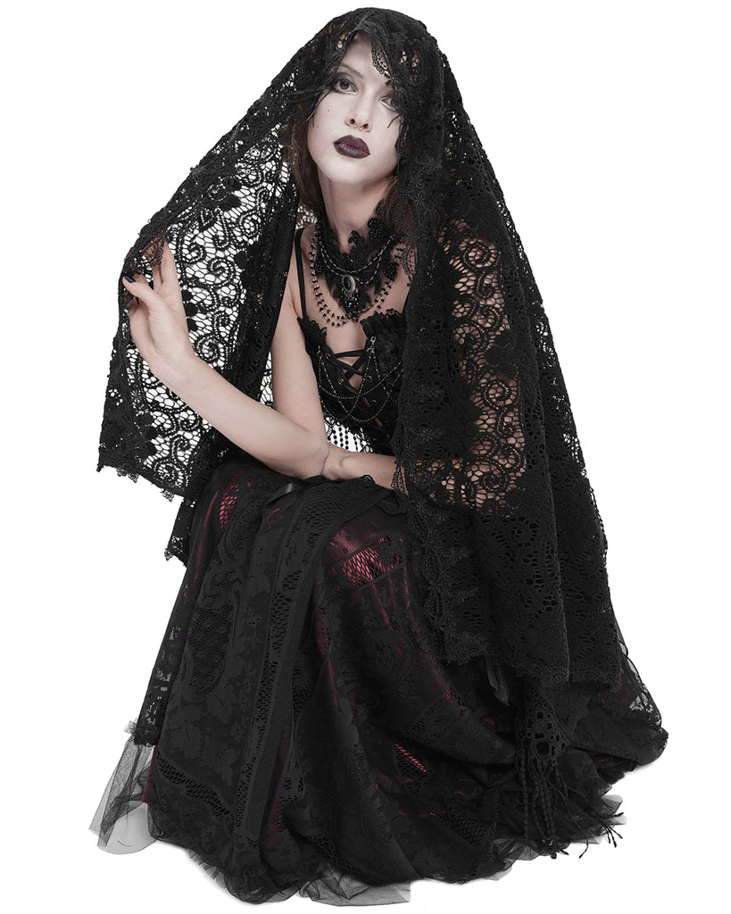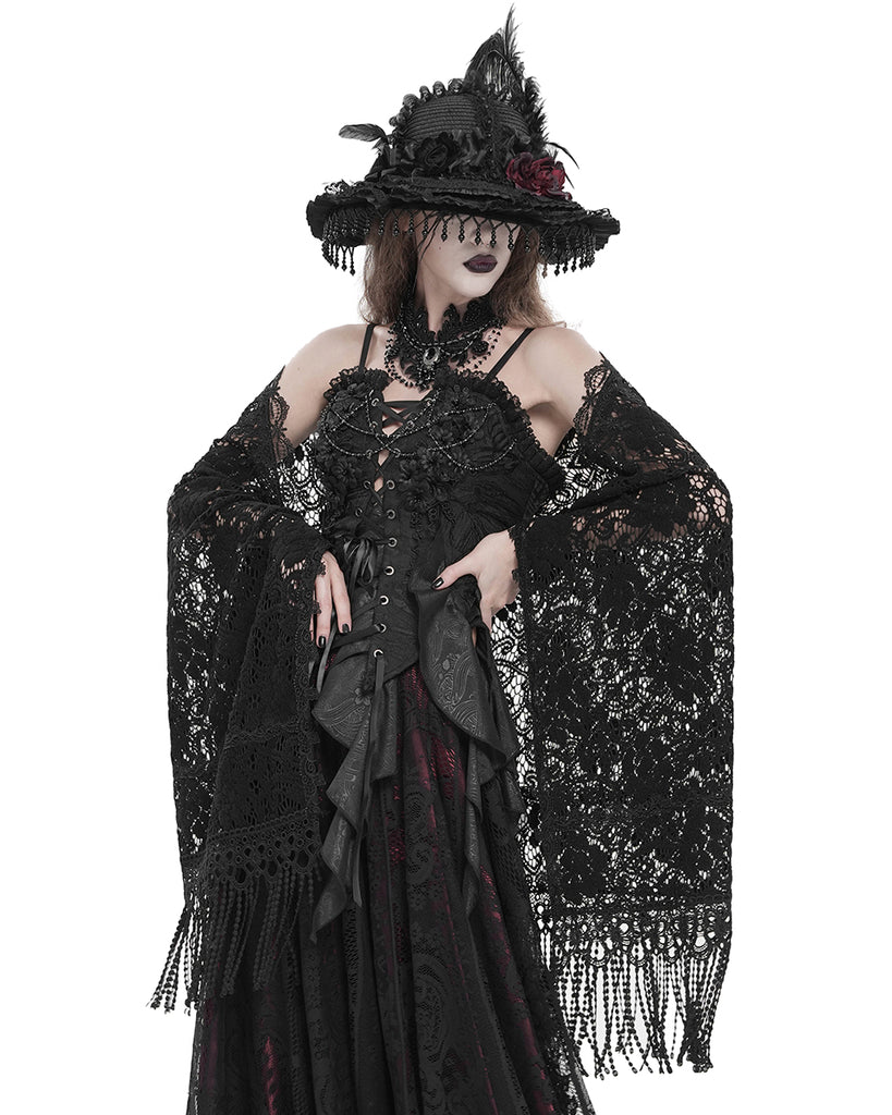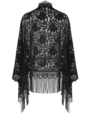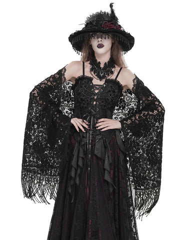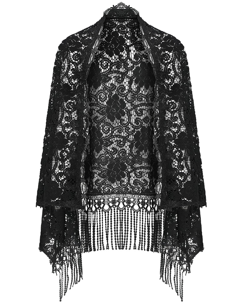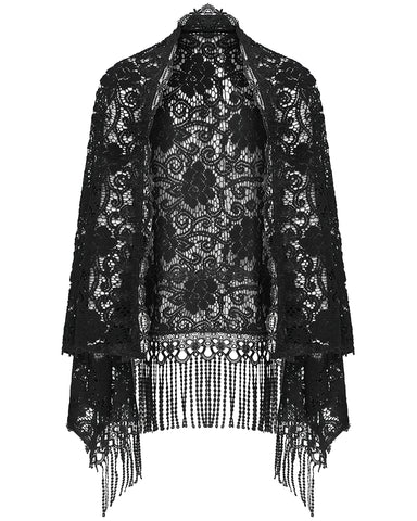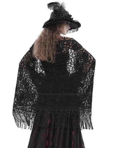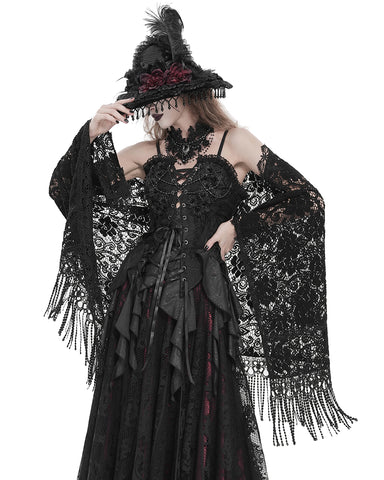 Eva Lady Womens Baroque Gothic Lace Fringed Shawl Cape