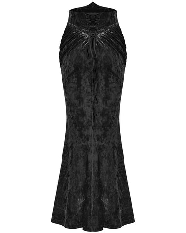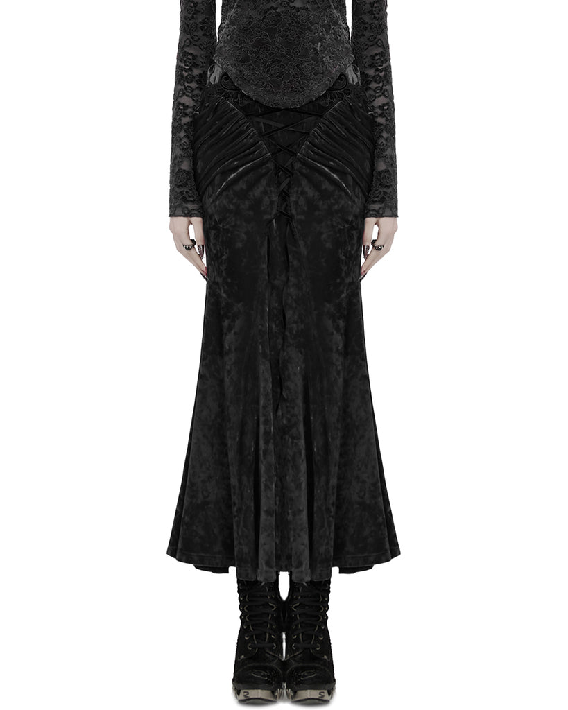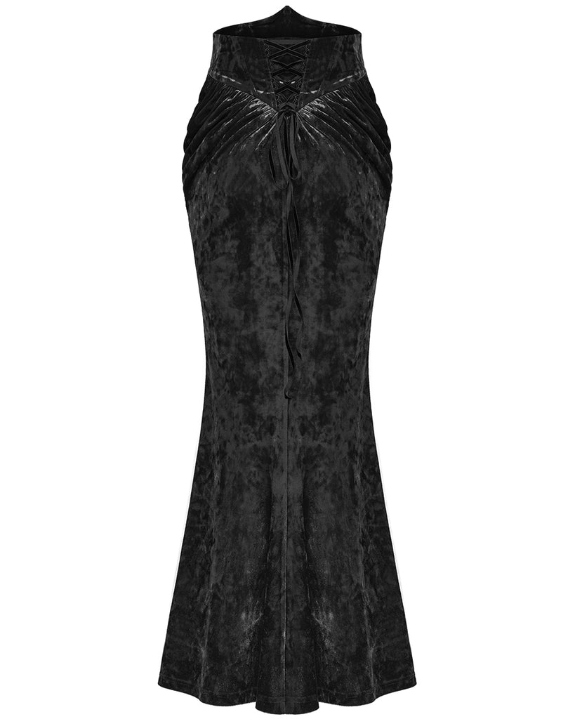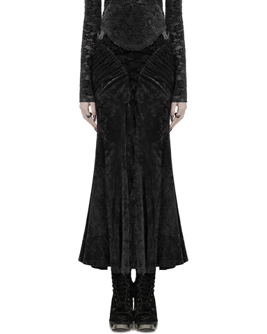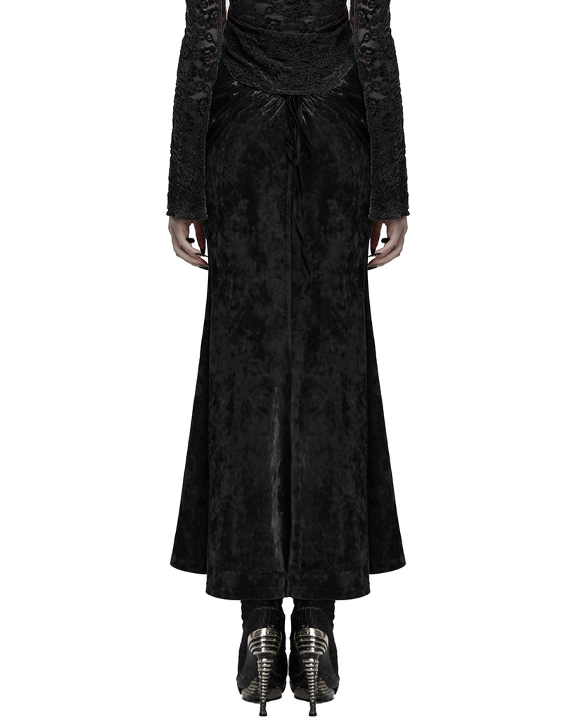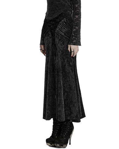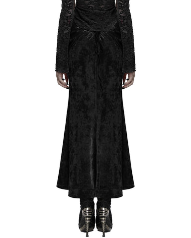 Punk Rave Daily Life Womens Long Gothic Velvet Applique Maxi Skirt - Black