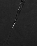 Form-flattering, fitted hip-length design with pointed hankerchief hemline, cut from soft & stretchy black jersey cotton fabric with patterned sheer mesh contrast and decorative embroidery.