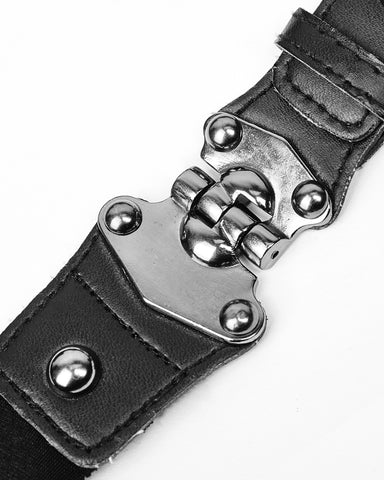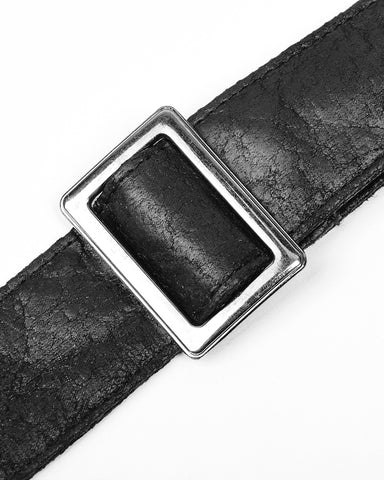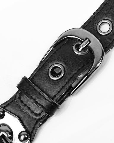 Featuring adjustable black faux leather halter strap with metal buckle and